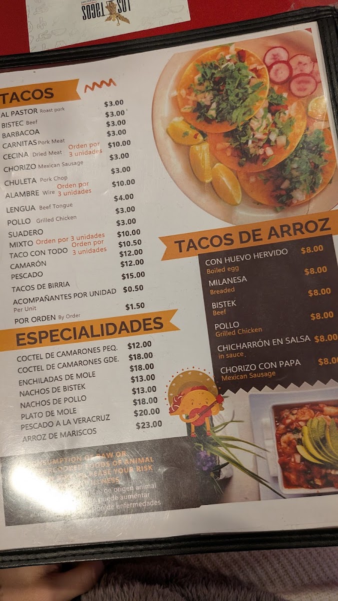 3 tacos per order + 1 soft drink: beef tongue, white onion, cilantro, salsa taquera Dare to try the most authentic street flavor. 3 tacos por orden + 1 refresco: lengua de res, cebolla blanca, cilantro, salsa taquera lengua tacos Olney, beef tongue tacos Philadelphia